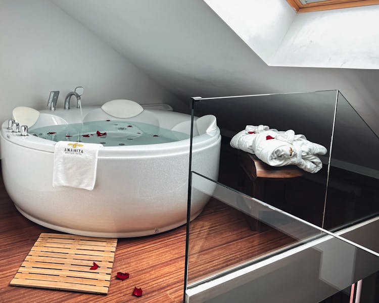 A two-level suite of light, elegance, and indulgence – with private jacuzzi
