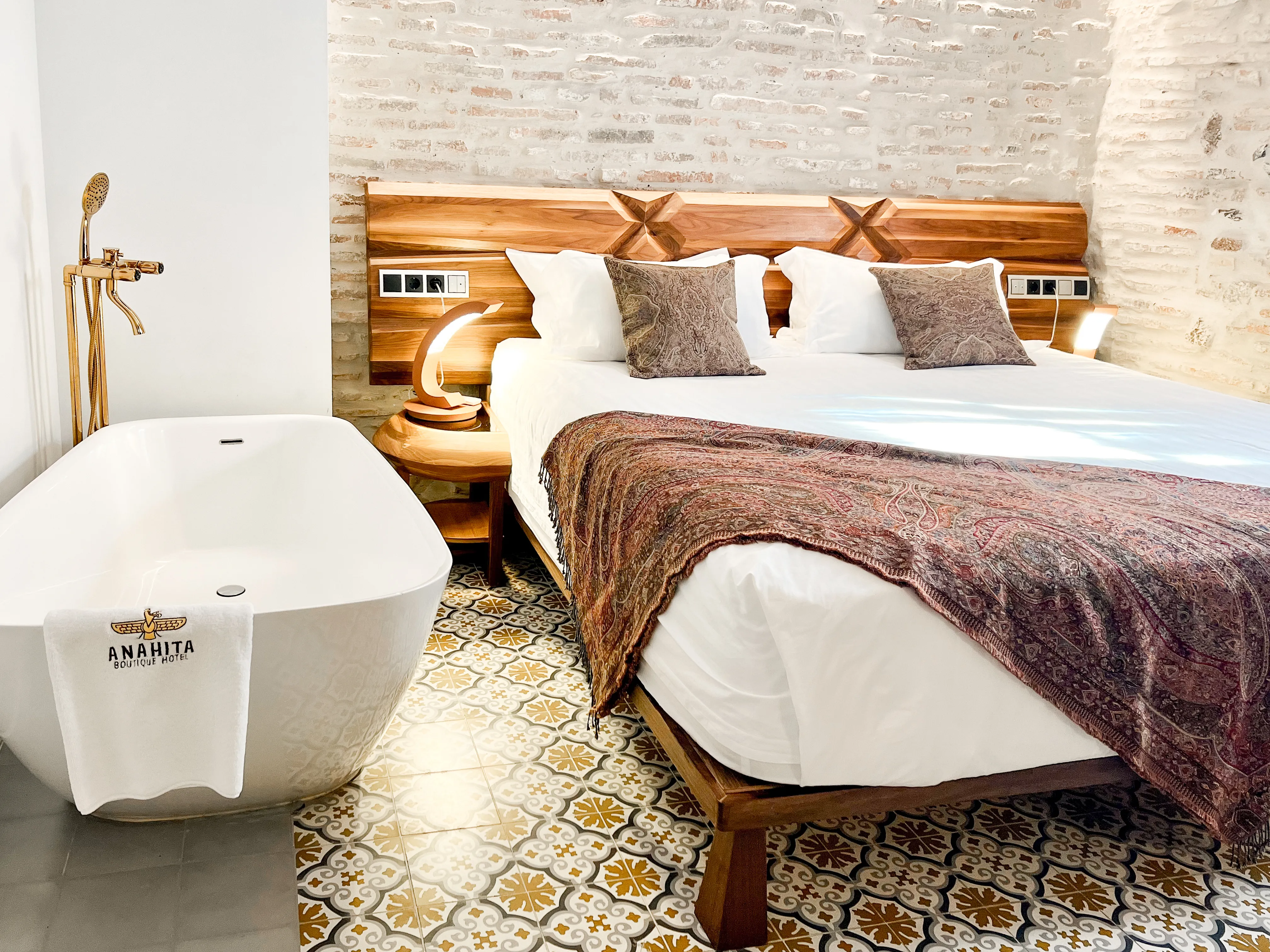 Located on Calle Álamos in Málaga’s historic city center, Anahita Boutique Hotel combines history, design, and modern comfort in a charming historic building. Just steps from the Alcazaba, Picasso Museum, and Málaga Cathedral, this 4-star boutique hotel is perfect for exploring Málaga on foot and enjoying an exclusive stay in the heart of the city.