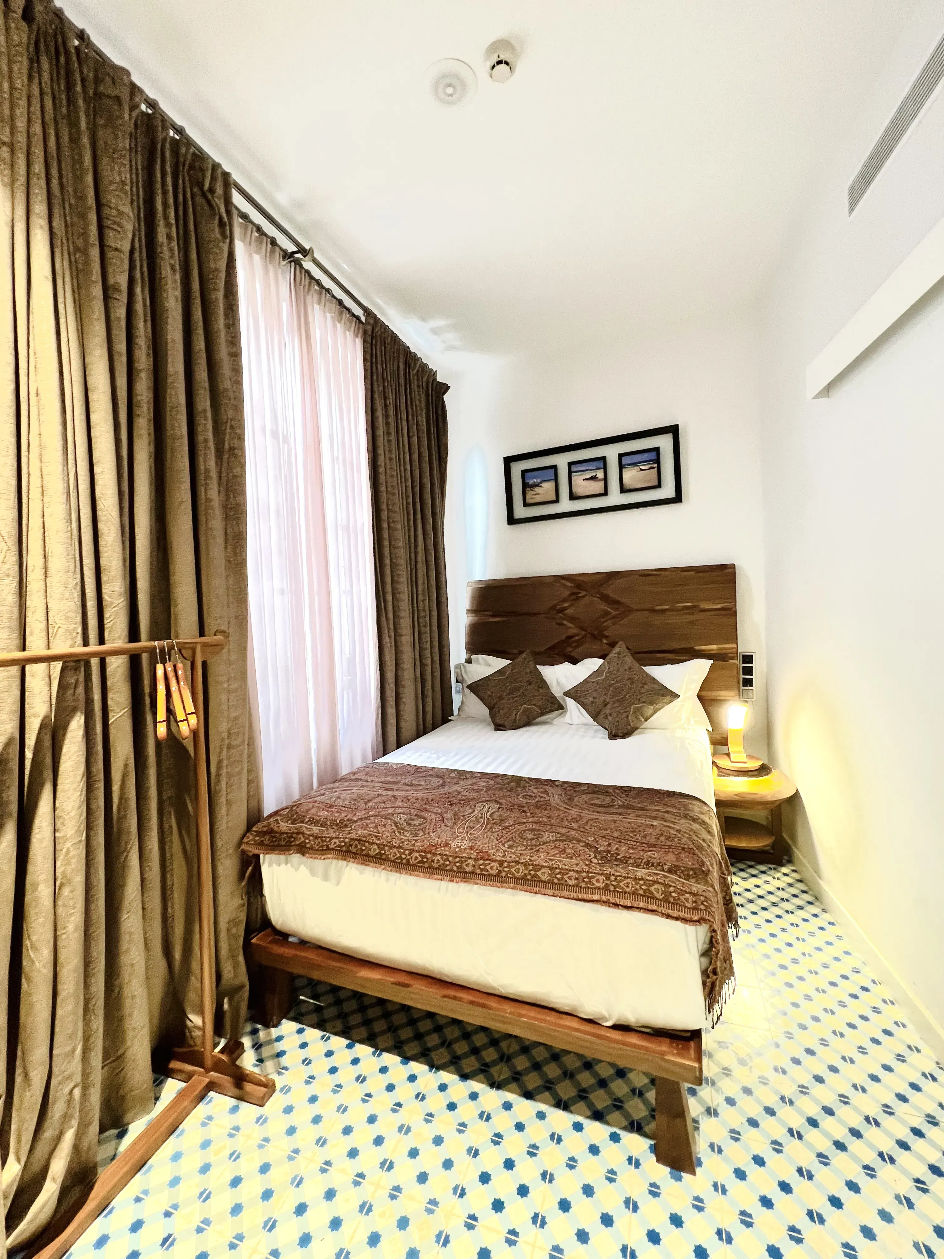 A cozy and peaceful room, perfect for solo travelers seeking rest without compromising on style. Though compact in size, it features a comfortable double bed and all the essentials for a relaxing stay in the heart of Málaga.